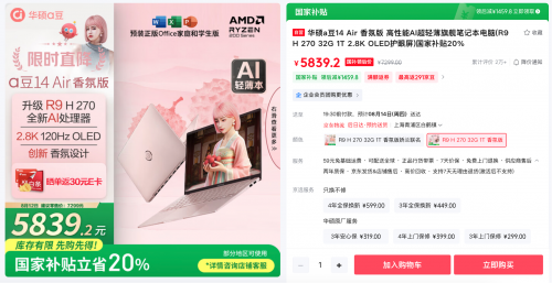 华硕a豆14 Air 香氛版不仅在硬件配置上满足高效办公、创作和娱乐多场景需求,更通过香氛和AI技术为日常用机注入了新的情绪价值,解锁工作与生活用机新体验,近期有换机打算的颜值党、精致家们强推。当前入手华硕a豆14 Air 香氛版,不仅可以享受至高20%国家补贴,到手价5839.2元,同时还可获得价值598元的赠品,包括香氛年度套装、豆叮耳夹式无线耳机以及60万AI点数。